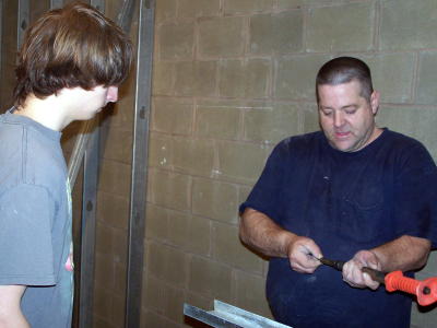 Steve Health and Ryan Bremar working on inside walls Calhoun's 911 Director Dave Johnson said work is moving ahead on the county's new communication center behind Calhoun Middle-High School. "It's a project that has risen with the help of lots of hard work and community effort. A long time coming, but it will be a great improvement for the county," he said. This past weekend, several volunteers were painting, pounding nails and completing a rest room in the building. The Calhoun Commission just received a second check for $52,192 to complete the financing on a 180 foot free-standing tower to be erected behind the center. Completion money is coming from a tax implemented on cell phones. Johnson said the bid has already been given, waiting on better weather to erect the tower. He said efforts are being made to get a cell phone provider to use the tower, a service which certainly needs improvement in the county. Meanwhile, a contractor is surveying the county, making efforts to complete the E-911 mapping and addressing project. "Hopefully, the a move to the communication center and the E-911 project will all come together soon," Johnson said.