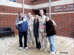 ![]() (L) Family welcomes Matt back to USA (R) Matt and his dad with flag Matt Siegrist has returned home safely from Iraq. Matt was deployed last November and returned home to Barberton, Ohio on January 7th, where he now resides with his wife Mindy. While Matt was in Iraq, he participated in over 100 combat missions as a gunner and driver. He was instrumental in locating, handling and disposal of several weapons during operations. Matt was struck by IED detonations on three different occasions and sustained minor injuries. He served as a team leader while in Iraq with Charlie Company 612th Engineer Battalion. His family says "We welcome him home with open arms and loving hearts. And thank you and all of your readers for your prayers while he was away. Our prayers have been answered." |