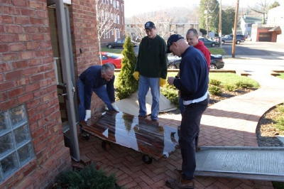 Roane County artisan Jeff Fetty has just delivered table tops to a Charleston office building made from 200-million-year-old petrified wood from the southeastern USA. The bases are made from 1.5 inch steel plate with copper patina accents, each weighing about 1,400 pounds. "The table designs echo the staircase which we did under a previous commission," said Fetty.