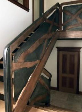 ![]() The staircase was created for Reed Brothers Limited Partnership an oil and gas exploration company in Charleston, West Virginia. It is part of their renovated office space on Virginia Street. The staircase was completed in the fall of 2003. Fetty's work can be found all over the world. Visit Jeff's leaning Oak Forge www.jefffettyironwork.com