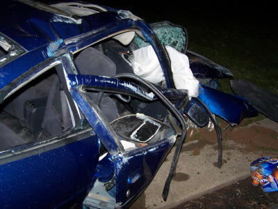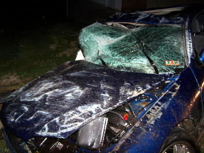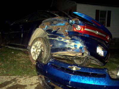 The 2003 Cavalier was traveling east through Big Bend on State Route 5 when it went out of control, rolling over, going airborne, first clipping a telephone pole, then clipping an electric pole, and coming to rest in a driveway belonging to Jesse Jackson. It was the second accident in the last month that landed in Jackson's driveway. Officials described the auto as a "tangled piece of metal," indicating alcohol played a role in the accident. Calhoun EMS dispatched ambulances to the scene with the Grantsville VFD. Trooper 1st Class Jeff Hunt is investigating.