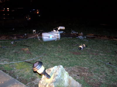 ![]() Auto clipped a telephone pole and this electric pole, ejecting victim