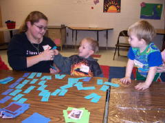 ![]() The activities for the afternoon were held in the gym. This event was organized by Jessica Villers, Heather Cottrill, Juston Ferrell, and Christi White. Quickly, the children loaded into their vehicles and traveled to the life skills room where the remainder of the activities occurred. They participated in letter match, picture match, and making numbers and shapes in chocolate cool whip. Eva Richards, Kendra Curry, Samantha Fittro, and Ashley Starcher planned the activities. The children built snowmen from marshmallows and M&M candies. Each child had hand and feet prints made with paint, and spent time coloring and drawing. Students planning the arts and crafts activities were Jessica Browning, Cindy Hart, Tiffany Richards, and Vicy Marks. Jello Teddy Grams (crackers), and apple juice were served. Hosts were Sierra Dawson, Ashley Miller, Brittany Jones, Michelle Knicley, and Ja'Dale Mundell.