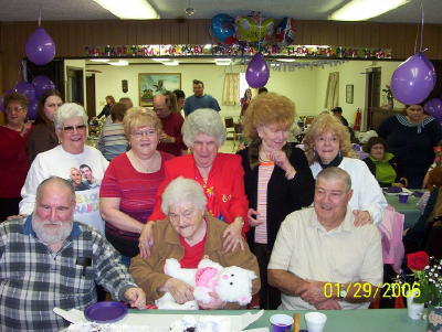 Lela's parents, Ulysses Grant and Harriet She is survived by seven living children, five are deceased. All eight of Lela's brothers and sisters are deceased. They include Lizzie (Joseph) Buckhannon, Lula (Bub) Slider, Bell (Everly) Husk, Mary (Rufus) Kerby, Rosa (Grover) Starcher, Joseph (Kathleen) Adams, Martha (Guy) Miller and Charles Adams. Lula Starcher Hughes, her niece, of Calhoun attended the party with members of her family.