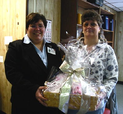 Brenda Dickey is the winner of the door prize receiving a basket Cervical Cancer Screening Saves Lives, yet ... · 11% of United States women report that they do not have regular cervical cancer screenings. · In the United States, About 14,000 women are diagnosed with cervical cancer disease each year and more than 3,900 women die in the USA each year from this disease. · Women in developing countries account for about 85 percent of both the yearly cases of cervical cancer (estimated at 493,000 cases worldwide) and the yearly deaths from cervical cancer (estimated at 273,500 deaths worldwide). · In the majority of developing countries, cervical cancer remains the number-one cause of cancer-related deaths among women. · A woman who does not have cervical cancer screening on a regular basis significantly increases her chances of developing cervical cancer. · High-Risk HPV Types are directly related to cervical cancer, yet many women are unaware of what HPV is or the relationship it has to cervical cancer disease. For more information on breast, cervical or ovarian cancer awareness, please contact Barb McKown at 354-9244 or Harriett Dial at 422-1515.