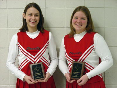 Leslie Garret (left) and Samantha Wilson (right) were name All-Conference Cheerleaders 2006 by the CWVAC after the championship game last Saturday.
