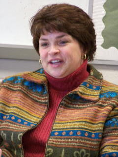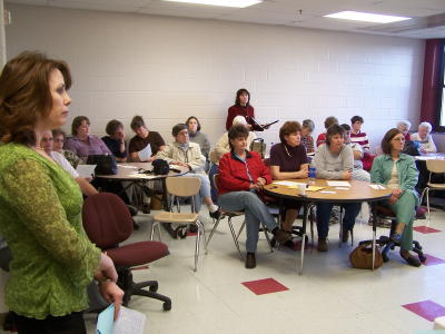 Calhoun Education representative, Kelli Whytsell helped the audience asked questions Calhoun's school board candidates participated in a "Meet the Candidate" forum Tuesday evening sponsored by the Calhoun Education Association. "It was a lively discussion," said association member Kelli Whytsell, who presented a list of 14 questions to the candidates. Irona Yeager, representing the Middle School Boosters, asked the candidates what position they would take regarding the school board reimbursing the boosters club for transportation money the group is being asked to advance for middle school activities. "The system will be reimbursed 90% of the costs, and we think it is unfair for the boosters to foot the entire transportation bill for middle school activities. "We have agreed to pay the 10% difference," Yeager said. Yeager said Superintendent Ron Blankenship has indicated he wants the boosters to pay the entire transportation costs. "We think it is unfair and we need help to keep the money in our programs," she said. The boosters group, through fund raising, have been ardent supporters of middle school activities, raising nearly $40,000. Middle school sports "have been rising to the top," said Yeager. Most of the candidates appeared to support the boosters organization over the issue, praising them for their volunteerism. School teacher Linda Jarvis told the candidates there are "very serious problems with discipline" in the middle school, indicating that teacher's "hands are often tied" to correct situations, some of which have recently turned violent. "Surely there is something a school board can do to (firm up) the discipline policy," Jarvis said. She cited incidents such as, "rewarding" students who exhibit behavioral problems, by allowing them to go on field trips, as a problem. Candidates were asked if they would support allowing youth league players to use the Calhoun Middle-High School facilities. They said the Calhoun school system is the only system in the LK area that does not allow games to be played on their field. Youth leagues have been playing on Wayne Underwood Field, which was donated to the county by the Board of Education. Sports parents have complained about the facility, including the lack of bleachers and other facilities. The youth football group wants to use the new high school field for four or five games each season. The prospective candidates were asked for their positions on several other issues including, selecting a new superintendent and "dead-head" bus miles.