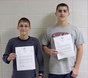 ![]() L to R - Zachary Hanshaw and Tim Sutro Tim Sutro, an eighth grade student received an invitation from Governor Joe Manchin III to attend the West Virginia Governor's School for Math and Science for rising ninth graders at the National Radio Astronomy Observatory at Green Bank, July 30 through August 12, 2006. Only sixty eighth-grade students were selected from around the state to participate in this exciting problem-solving experience. Zachary Hanshaw, a seventh grade student, received an invitation from Governor Joe Manchin III to attend the event for rising eighth graders at West Virginia University, July 5 though July 14, 2006. He was commended for his outstanding achievement as a mathematics and science scholar. Courtesy of Calhoun Middle School