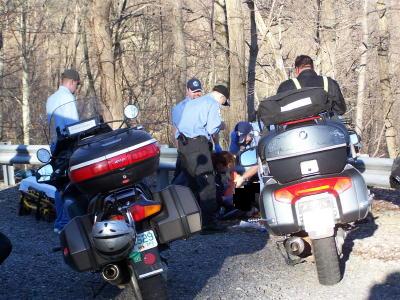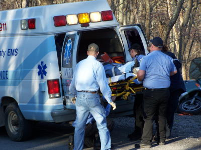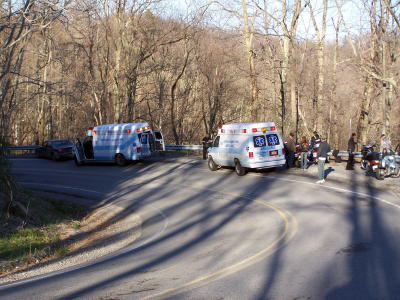 ... who was taken to Roane General by Calhoun EMS An out-of-state motorcyclist was injured on US 33-119 on Sand Ridge Hill Sunday evening. He was taken to Roane General Hospital by Calhoun EMS shortly after the 6:15 p.m. accident. He was traveling with several other bikers taking a tour of the region. Sources at the scene indicated the man was not critically injured. The cyclist lost control in a sharp turn a short distance down from the top of the hill on the Gilmer County side. Arnoldsburg Fire Chief Bill Jones said there has been at least one fatality in the series of sharp turns near the top of the hill, among several other motorcycle accidents.