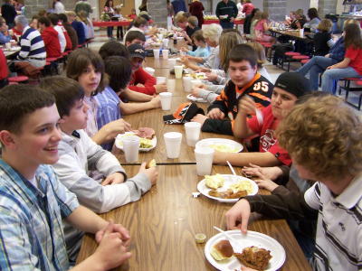 WVRC radio personality Toby Wagoner (R) was MC for the event It was a big sports year for Calhoun Middle School, whose athletes were honored at the CMS Sports Banquet Saturday evening at Calhoun Middle-High School. The school's wrestlers and football teams were the CWVAC champions, with the CMS volleyball team coming in second and the CMS boy's basket team rating 3rd place in the CWVAC. "It's been a spectacular year," said CMS booster president Irona Yeager. "We've had a great bunch of athletes," said Yeager, and "It's time to recognize them for their hard work." Yeager expressed thanks to the coaches for their time and dedication and all the volunteers who have helped. WVRC radio personality Toby Wagoner was the MC for the evening of recognition by the coaches.