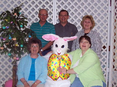 ![]() The Easter Bunny with Rev Rick Metheney and the "Soul Seekers" Submitted by Brenda McBride Rev. Rick Metheney delivered the Easter message at the CCCOA Easter Dinner on Good Friday, April 14th. The dinner was held at the Grantsville Senior Center. Beautiful music was provided by the "Soul Seekers" Yvonne Church, Fred Church, Susie Metheney and Shelley Mace. A handmade quilt, recently raffled by the CCCOA was won by Judy Powell, the drawing was part of Friday's event.
