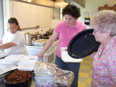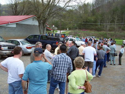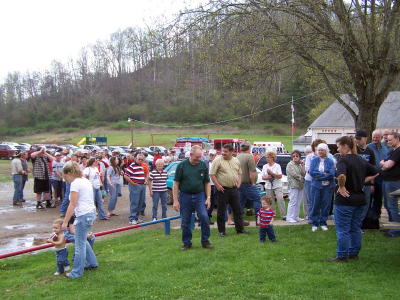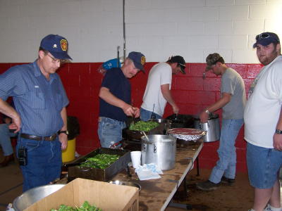 Firemen work the skillets, turning out fresh batches for ramp eaters Folks came far and wide Saturday to enjoy a West Virginia delicacy - the mountain onion, known as ramps. The annual Upper West Fork Ramp Dinner, sponsored by the fire department and the park as a fundraiser, offered up huge servings of country food that complimented the cooked ramps. The crowd might have been thinner this year because the event was held the day before Easter, and some folks might not have wanted to carry the odor to church. The weather was a little threatening, but it mostly passed by. Most ramp eaters say the odor goes away quickly, unless you're eating daily doses of the spring tonic. The group went to the mountains last weekend to dig the ramps, and then performed the hardworking task of cleaning them. There was a large supply this year, according to Michelle Sears.