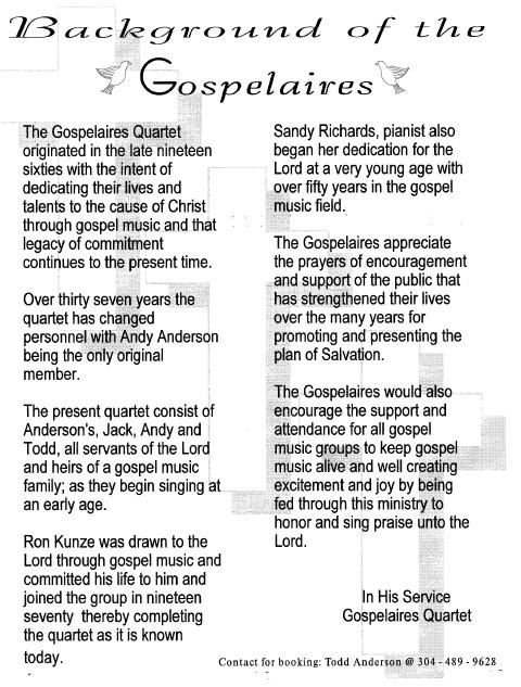 ![]() The Gospelaires will perform on Sunday Williams said over 250 people have made reservations said for the dinner and lunch. David Cain will be the master of ceremonies for the event, which will commence with the Saturday dinner at 5 p.m. followed by the ringing of the historic church bell and a welcome from Pastor C. W. McDonald.