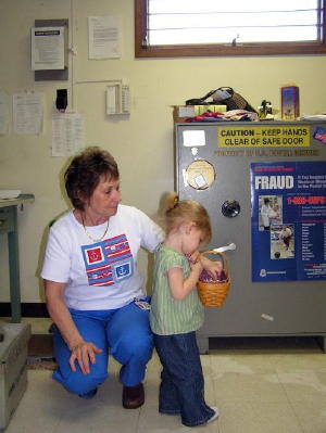 Mila's granddaughter, Ashlyn Donohew draws Brenda There was several winners of other door prizes that will be notified by phone. Mila would like to thank everyone that stopped by to welcome her as the new postmaster.