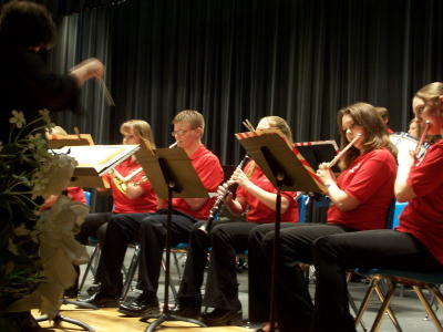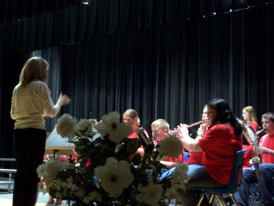 Faye Chambers directs the Calhoun Middle School Band "Celebrate the Arts" was a multi-tiered effort at CM-HS, last night featuring the high school and middle school band, the school choir, special performances, and an art show in the commons area of the school.
