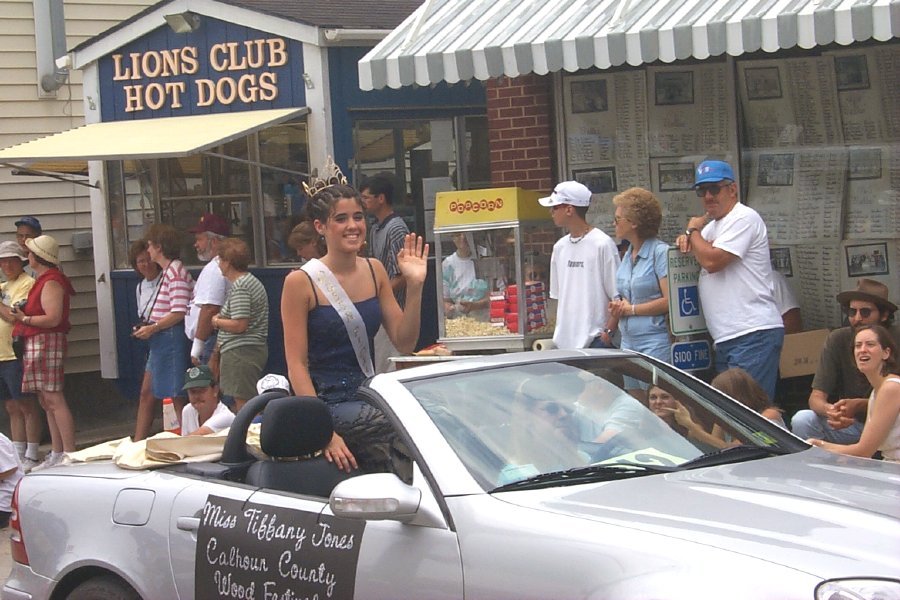 Tiffany Jones, Queen Flora 2001 of the Calhoun Wood Festival, appears in the Folk Festival parade in Glenville