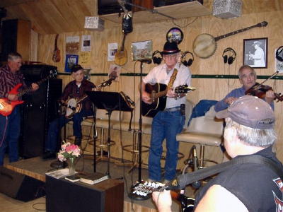 ![]() Front - The Mayor of Five Forks entertains guests Willard Jones, the mayor of Five Forks was present to help in the celebration and enjoy cake and ice cream. He also entertained the crowd with his songs. Come out any Friday night and visit with friends and hear some good music.