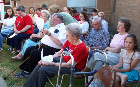 The 8th annual Memorial Day Ceremony was held yesterday evening at Minnie Hamilton Long Term Care. The highlight of the event was a youth group, April Falls, Kayla Miller, Micheala Grogg and Marshall Grogg, signing to music and the lighting of memorial candles as the names of people to remember were read. Pastor Mary Zimmer welcomed the group, including residents of long term care, saying "The memorial service has been a community effort of the Chaplain's Association and the Friends of Minnie Hamilton Health Care Center." A number of individuals and groups presented music, including Patty Mangus, Pam Davis, Allen Parsons, Shari Johnson, Calvin Wilson, and the Soul Seekers. The Friend's group served refreshments.