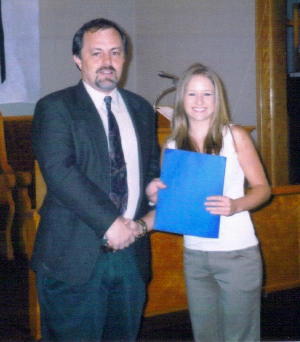 ![]() Rev. Rick Swearengin awarding Casey Westfall scholarship Calhoun County United Methodist Cooperative Parish awarded High School Senior Casey Westfall, the daughter of Scotty (Chip) and Janice Westfall a $500 scholarship. This is the sixth year the Calhoun United Methodist Cooperative Parish has awarded such scholarships based on church and community involvement and expression of the applicant's faith. Pastor Mary Zimmer, Coordinator for the Parish said, "The scholarship is made possible through gifts from individuals and United Methodist Churches within Calhoun County." "The scholarship recognizes and supports our youth and their openness in being servants of Christ, which continues to be an important and exciting ministry for the Parish," said Zimmer.