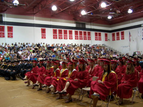 The 82nd commencement at Calhoun High School was held last night at Mt. Zion, announcing the graduation of 69 seniors.While the graduation crowd was down compared to recent years, the school gym was nearly full with parents, students, school staff and graduates. Heavy rain fell during the ceremony, but those attending were greeted by a rainbow at the conclusion of the event. Principal Mike Offutt, who is leaving his post at the conclusion of the school year, announced about $750,000 worth of scholarships issued to members of the Class of 2006.