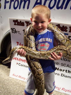 Trent Church, six-year-old snake handler (left)
