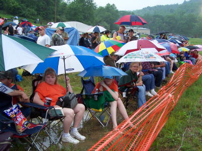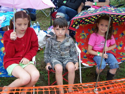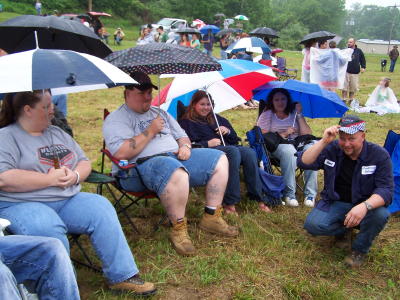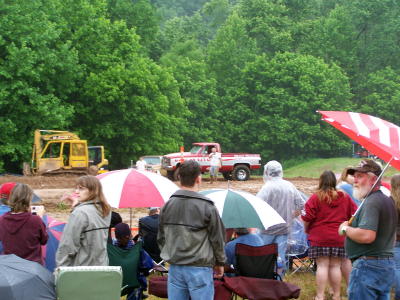The rain seemed to have little effect on participants and spectators at last night's annual Wood Festival Truck Mud Bog, which lasted well into the night. Calhoun's favorite red-neck event was a rain, red clay and umbrella night, with several cars getting hung up in the grassy fields used for parking. While attendance was dampened compared to last years event, a large number of folks came out. The trucks sped down the mud track at high speeds, chasing the money prizes.