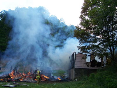 Fire completely destroys Sang Run house Fire completely destroyed an old vacant house on Sang Run near Milo yesterday evening, according to Upper West Fork Fire Chief Randy Perkins. The structure was reportedly owned by Rocky and Tammy Tawney. 911 received a call about 6 p.m. with the Arnoldsburg VFD also responding to the blaze. The cause of the fire was not learned. There were no injuries. |