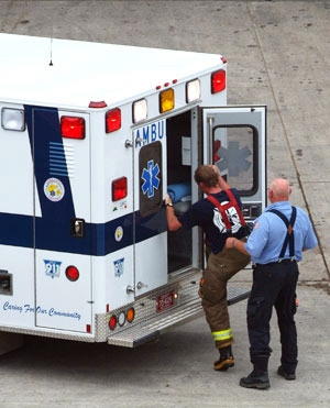 A fireman overcome by heat was given
