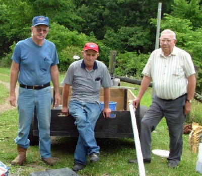 ![]() Left to Right - Stan Norman, Albert Tanner and Victor Whytsell Story and photos by Judy Kerns On June 20, 2006, the Grantsville V.F.W. Post 5959 represented by Victor Whytsell, Albert Tanner, and Stan Norman remembered area veterans by setting a flagpole in the Miller Cemetery at Shock, West Virginia. Local veterans, Jack Miller (Korean Conflict) and Vernon Kerns (Vietnam) joined the three V.F.W. volunteers. Also present were Diana Miller and Judy Kerns. Upon completion of setting the flagpole, a short dedication ceremony was held in honor of all who have served our country. The American Veteran, written and read by Vernon D. Miller, was played. The ceremony was concluded with a scripture reading and prayer by Vernon Kerns. Lunch was served to the group. Special memories today of veterans of our area who are laid to rest in this cemetery: Brooks Wolfe (WW II & Korean), Clayton Wolfe (WWII), Clarence Collins (WW I), Orbert Miller (WW II), Dale Nicholas (Korean), Meredith Minney (Vietnam), Clifford Varner (WWII) and Earl Miller (WWII). In recognition and appreciation of the community service of the V.F.W Post 5959, a framed copy of The American Veteran will be presented to the local group.
