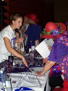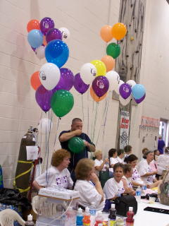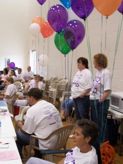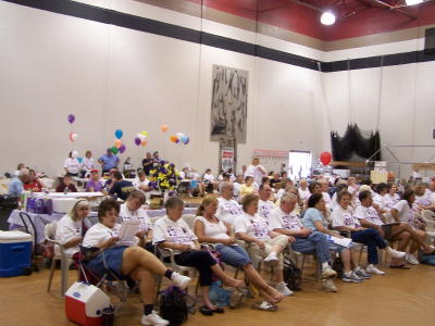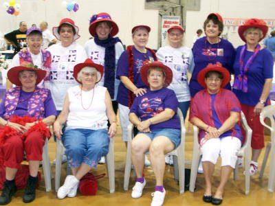 Red Hatters came to walk the walk Relay for Life this past weekend was a time to remember those taken by cancer, but it was also a celebration of life for those who have survived the disease. The event, originally scheduled for Wayne Underwood Field, was moved inside to CM-HS due to predicted rain. Last year the event raised about $26,000. Hundreds of Calhoun and regional residents participated in the fundraiser for the American Cancer Society, an all-night event with constant walkers on the Relay Track, marching in the fight against cancer. Local relay groups set up food booths, provided entertainment and organized activities. The luminary-candle ceremony was held in remembrance of those who have died from cancer.