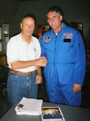 ![]() Cosgrove (center) with fellow teacher from Romania During the program each Honeywell Educator participated in a variety of activities including 40 hours of classroom, laboratory and field training. They also had the unique opportunity to participate in astronaut training exercises including a high-performance jet simulation, scenario-based space missions, land and water survival training, and state-of-the-art flight dynamics programs. "We are very grateful for the generous support we receive from Honeywell, a leading partner of the U.S. Space & Rocket Center," said Larry Capps, Chief Executive Officer of the U.S. Space & Rocket Center. "Thanks to Honeywell, teachers from around the world will come together to learn activities that they can take back and implement in their classrooms." Cosgrove hopes to bring many aspects of the program to his classroom and possibly within his community. His goal is to bring a group of students to the Space and Rocket Center's well know Space Camp. Of interest, while Cosgrove was attending the program, Tom Hank's son was also attending Space Camp at the facility.