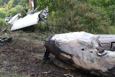![]() What was the cabin-area of the plane may be the badly burned area to the left. The mid-right part that's flat on the top is the right engine and part of the wing. Pieces of the plane were caught in trees and scattered up to 50 yards from the main fuselage area, which was mostly destroyed. West Virginia State Police, Department of Natural Resources, EMS workers, and fireman were securing the scene as various media decended into the area. No one was allowed near the plane, and few made comments. The plane was not visible due to the heavy foilage. "We have to wait for the FAA to get here," was a common remark. The plane was an older model twin engine plane, according to an airport spokesman who declined to be identified. A witness, who asked not to be identified, said the plane's wings were dipping side-to-side and it looked like the pilot never gained control of the plane once it became airborne. Later in the evening Civil Air Patrol Major Debbie Boggs, of Charleston, came with members of the cadet program, after the Herald photographed the wreckage. They were called in by the FAA to secure the crash area until investigators from the National Transportation Safety Board arrive from Washington, D.C. West Virginia State Police at the scene, TFC K.W. Huddleston and Trp D. B. Gast, augmented security. "The Civil Air Patrol has primary responsibility to control the entrance," TFC Huddleston said. There is no announced timeline for the investigation, as yet. The Civil Air Patrol is an all-volunteer Air Force Auxillary. Their primary duties are emergency services - including helping to search for downed planes, managing cadet programs for youth under 18, and offering aerospace education. There are approximately 650 West Virginian members of the Civil Air Patrol. Of that amount, 224 are cadets, Major Boggs said.