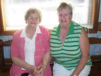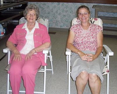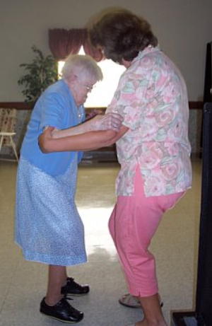 ![]() Alverta Blosser (left) and Loretta Bishop have fun "cutting the rug"