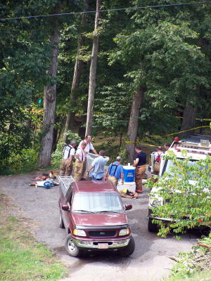 Victim died in Gary Crichfield's house on (Hur Herald Photos) A West Virginia State Fire Marshall has verified that one man died when fire swept through a house near Spencer early Saturday morning. Members of the Spencer-Roane Volunteer Fire Department recovered the victim, described to be in his 20s. His name is being withheld. The fire and death are being investigated as "suspicious in nature" by the Fire Marshall's Office and the WV State Police. The house, located at 1258 Parkersburg Road (Rt. 14), was owned by Gary Crichfield. Crichfield, one other man and the victim were reportedly in the house when the fire broke out. The victim's body has been sent to the State Medical Examiner's office in Charleston. A second member of an investigative team from the Fire Marshall's office was summoned to the scene. |