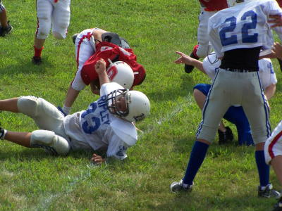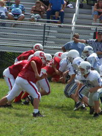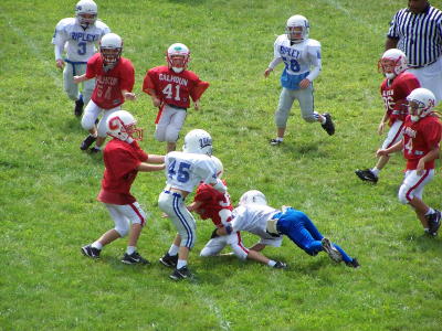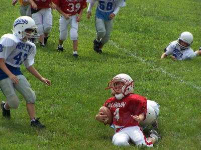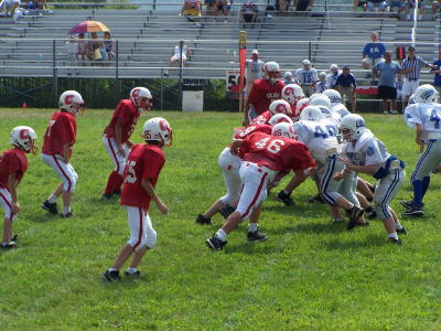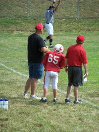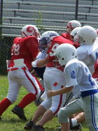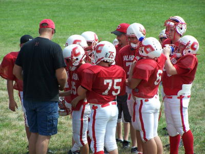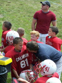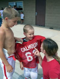 Calhoun's youth league football - the Little Red Devils - played Ripley at Calhoun Middle-High School Sunday afternoon, under a sweltering summer sun.