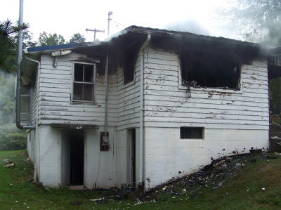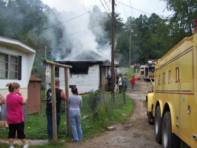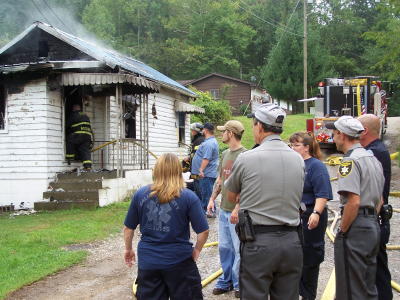 Firemen quickly doused the blaze, the woman (Hur Herald Photos) An elderly Grantsville woman perished when fire destroyed her small four-room house this afternoon on Hathaway Street on the town's south side. Her name is being withheld pending notification of next of kin. Neighbors said the woman returned to her house about two hours before the fire was discovered at 2:48 p.m. She had lived by herself for a number of years. "I looked out and saw smoke coming out of the house and called 911," said a neighbor across the street. Grantsville firemen were on the scene quickly, bringing the blaze under control, and discovering the woman's body inside the house a short time after their arrival. She reportedly wrapped herself in a blanket in an effort to escape the fire. Grantsville Fire Chief Craig Gherke said the State Fire Marshal is expected to arrive at the scene. County Coroner Ed Messenger was at the scene, with Grantsville Police Chief J. D. Nicholson, Sheriff Carl Ballengee, Deputy Craig Gherke, Deputy Justin Metheney, and officer Bob Groves.