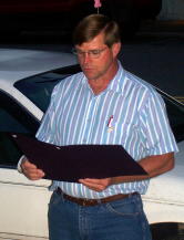 Following Helen's speech, Calhoun County Commissioner Rick Sampson (right) read the proclamation declaring October 2, 2006 Breast Cancer Awareness Day and the month of October as Breast Cancer Awareness Month. After the proclamation, Barb McKown of Minnie Hamilton Health Care Center, Inc. gave a presentation on the Coleman and Katheryn Burrows Memorial Fund. All funds raised will go toward the purchase of mammography equipment at MHHCC.