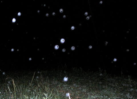 ![]() Most readers explained the last game photo on the Herald as a refraction and light deal, but what about this spooky one just in time for Halloween? Caught on one frame, the camera activated by motion, somewhere in Calhoun County. What are these guys? |