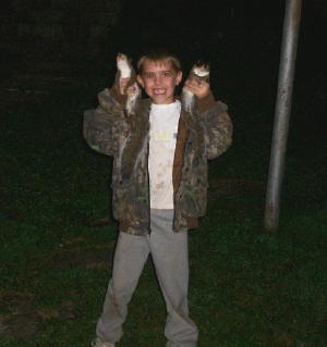 ![]() Hunter McIntyre bagged his first squirrel, the first time he went hunting. The mighty Hunter managed to kill one of the two he is holding, the other was shot by dad, Eddie McIntyre. Hunter's big kill was on October 10, 2006.