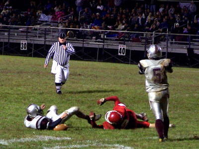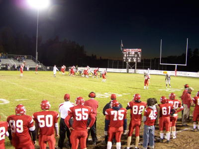 The Raiders took the lead a little later following one of those two strange interceptions. But another missed extra point made it 12-7 in favor of Roane. Calhoun regained the lead right before intermission when Zach Moore took in a 35-yard scoring pass from Matt Houchin. On the reception Moore took the ball away from a Roane defender in the end zone. But that was the high point for the Red Devils as Hart had to go out of the game at intermission and Roane had that bizarre 18-point third quarter. With the Raiders leading by 16 (30-14) Calhoun rallied late in the fourth quarter when Moore caught the second of his three touchdown passes. Overall Moore caught 10 passes for 184 yards. That's when Roane decided to go for the touchdown (rather than take a knee) with: 45 remaining in the contest. The Raiders actually made the extra point for a 38-20 lead. Game over? Not quite. Calhoun roared back down the field and scored when Moore pulled in a 13-yard halfback option pass from Jeff Goodrich. With the loss Calhoun drops to 5-2 on the season and will drop from its current seventh place in the Class A rankings. With the win Roane goes to 5-3 and should move up from 17th place in Class AA. Calhoun travels to Wirt County Friday night in a must-win game if the Red Devils hope to keep its playoff hopes alive. Roane plays Oak Hill Friday.