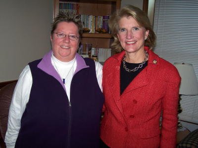![]() Congresswoman Shelly Moore Capito (right) with Calhoun Republican chairwoman Nancy Bremar, was the keynote speaker at the party's annual Lincoln Day Dinner, held last night at the senior center in Grantsville
