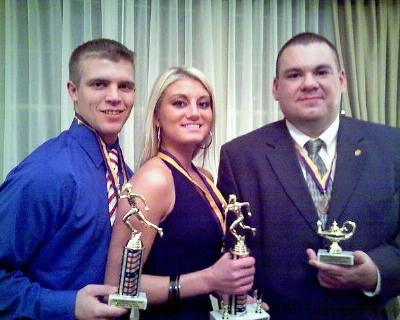 ![]() (L-R) James Hardin, Amanda Hescht and Dorse Sears Unexpected and highly prized awards found their way back to the campus of West Virginia State University in the hands of three surprised and elated Criminal Justice students the first week of November. Students James Hardin, Amanda Hescht and Dorse Sears attended the Region IV Conference of the American Criminal Justice Association in West Chester, Pennsylvania November 2 - 5, 2006. Sears is a Calhoun native. The students were accompanied by Criminal Justice Club Advisor and WVSU Criminal Justice Instructor W. R. Whyte. The theme of the regional conference was "Victimology". Professional presentations were conducted by FBI Agent Ray Carr, who spoke on serial offender characteristics and degrees of risk for potential victims, and Debra Puglisi Sharp, a published victims' advocate who had herself suffered extended captivity and brutalization at the hands of a felon. The Regional Conference also scheduled various competitions for those in attendance, consisting of rigorous academic testing in a number of criminal justice sub-fields, firearms competition, a timed physical agility obstacle course, and a team crime scene investigation challenge. Although the students from West Virginia State University had originally hoped to compete in the firearms competition, coordinating practice times and classes proved to be too much of a challenge in the weeks leading up to the Conference. Dorse Sears, Student President of the WVSU Criminal Justice Club, reports that he is determined, with the help of members of the WVSU Public Safety and Criminal Justice Departments, to be fully prepared for future Regional and National firearms competitions, as long as there is student interest to support the effort. Following up on their individual successes, the three students teamed up to enter the Crime Scene Investigation Challenge. Approximately 20 teams were entered in the competition and several of them consisted of professional ACJA members, criminal justice instructors and police officers. At the end of a hectic day, filled with other competitions, the West Virginia State University team of James Hardin, Amanda Hescht and Dorse Sears "crammed" for the competition in the hour before their scheduled exercise.