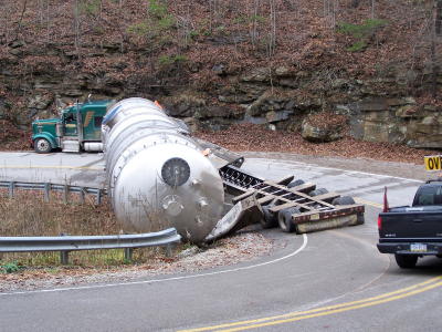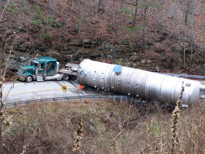 ![]() 5 PM UPDATE - The correction of the tank wreck at Jackson Curve is going slowly, and the wreckage might not be cleared until sometime Saturday. A transport truck hauling a very long metal container failed to negotiate the hair-pin turn on Jackson Hill this morning, overturning and blocking Rt. 16. The highway is closed. Hundreds of trucks and vehicles have already been re-routed. Jackson Hill is north of Grantsville, near Five Forks. Heavy equipment to remove the overturn was expected on scene by early afternoon. The highway could be blocked into the evening, and possibly not cleared until sometime Saturday.