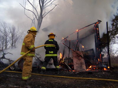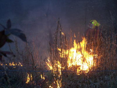 An outbuilding that caught on fire sent huge billows of black smoke skyward yesterday evening on Sand Ridge, threatening a nearby garage. Quick action by the Arnoldsburg VFD brought the blaze under control, saving the garage. The fire ignited a grassy field, and firemen and volunteers had to extinguish that fire. The fire was at the Art Johnson property, about one-eighth mile off US 33-119 at Sand Ridge. Arnoldsburg firemen responded to the call at 4:26 p.m. after first responding to a cellar fire at the Bunch residence at 4:08 p.m. in Millstone.
