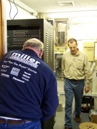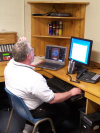 Former 911 Director Joe Tanner mans alternative After more than eight years of planning, discussing and struggling, Calhoun's 911 center is in a new home. (Read earlier Herald stories) The operation was shifted yesterday from the old quarters at the top of Barr Hill at the north end of the Mt. Zion Ridge to the new facility behind Calhoun Middle-High School, adjacent to the school board offices and bus garage. Former 911 Director Joe Tanner manned the phones and operated 911 from the Arnoldsburg fire station for nearly 10 hours yesterday, while the switch was being made. Tanner, several years ago, created a small communication center at the station for just such emergencies. The new center was a beehive of activity throughout the day, hooking up equipment and installing new technology. The center's 180 foot tower was erected several days ago and new radio antennas were installed. Chief dispatcher Burl Postalwaite said "It was a huge amount of work, but it went very smoothly," including the efforts of Frontier Telephone.