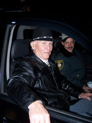 ![]() Parade marshal Jim McCormick and Sheriff Carl Ballengee lead Grantsville's Christmas Parade with the CM-HS Red Devil Band