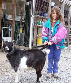 Timmy the Goat, the amiable pet of this Rosedale girl, enjoys loitering in front of the village's country store, sponging and begging snacks from customers