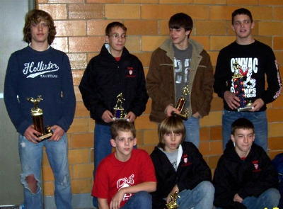 Front L-R - Evan Mace, Justin Yoak and Submitted by Jennifer Miller The Calhoun Middle School Wrestling Team will be hosting the Central West Virginia Athletic Conference Wrestling Championship on Saturday, February 3rd. Teams in competition will be Braxton, Calhoun, Clay, Spencer, Summersville and Wirt. Wrestling for Calhoun is Justin Yoak 90#, Aaron Dawson-Jarvis 95#, Evan Mace 102#, Dillon Mefford 128#, Ben Laughlin 135#, and Caden Arnold 155#. Zach Hanshaw 110#, is injured and will not compete. Team as well as individual conference champions will be crowned. Calhoun Fans are invited to attend in support of The Calhoun Middle School Red Devils. Wrestling begins at 10 a.m.