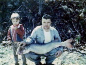 Bill and Bub Jones of Grantsville with giant 46" muskie caught in The Little Kanawha River at Tanner Creek on April 24, 1975 (Photo courtesy of Esther Wilson)