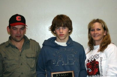 ![]() Clark's winning overtime takedown During an interview Clark said, "I was real nervous out there," "It was crazy, crazy. It is wonderful just to be able to beat the person who has beat me all year long." Clark was also chosen as the Class AA/A Most Outstanding Wrestler. Other Calhoun wrestlers placing in the event are, Nick Stevens-103, 6th place; Seth Jarvis-112 6th place; and Derek Roberts-140 6th place.